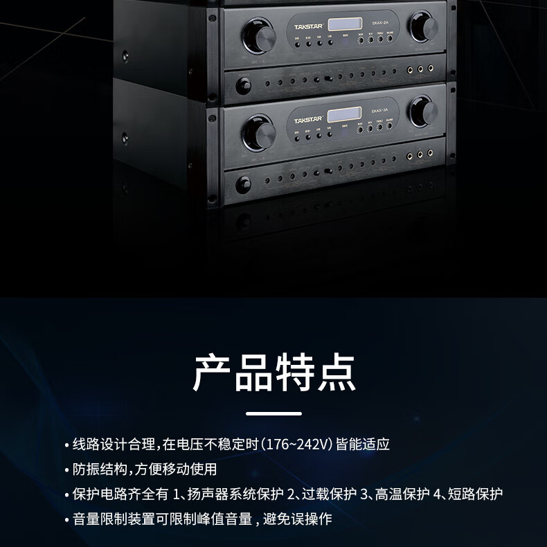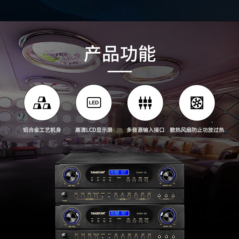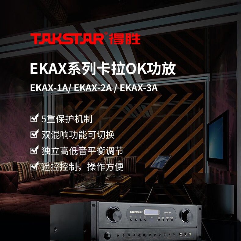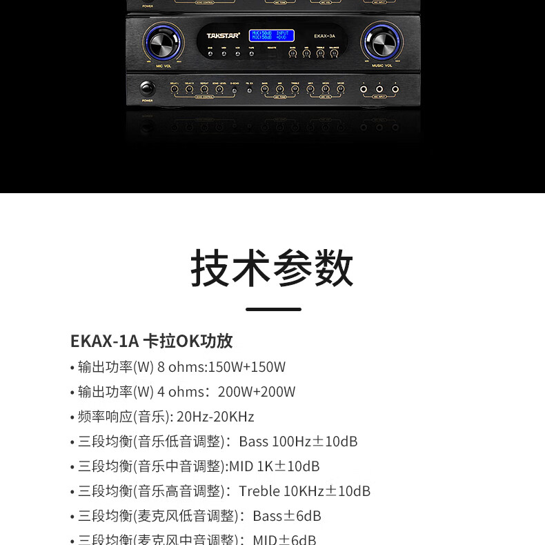 得勝/TAKSTAR EKAX-2A 音頻功率放大器設(shè)備(功放設(shè)備)合并式功放 雙混響帶音樂和錄音輸出反饋抑制功能 家庭KTV會(huì)議背景音樂功率放大器